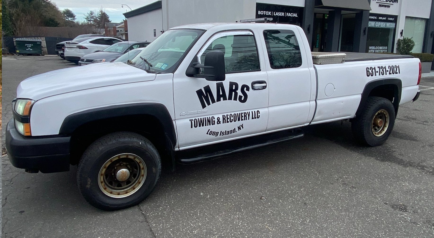 Mars Towing & Recovery is a locally owned and operated towing company based in Nassau County, Long Island. As a fully licensed and insured owner-operator, we focus on honest, dependable work at fair rates. We provide local towing and roadside asssitance, including lockouts, jump starts, tire changes, and fuel delivery.
